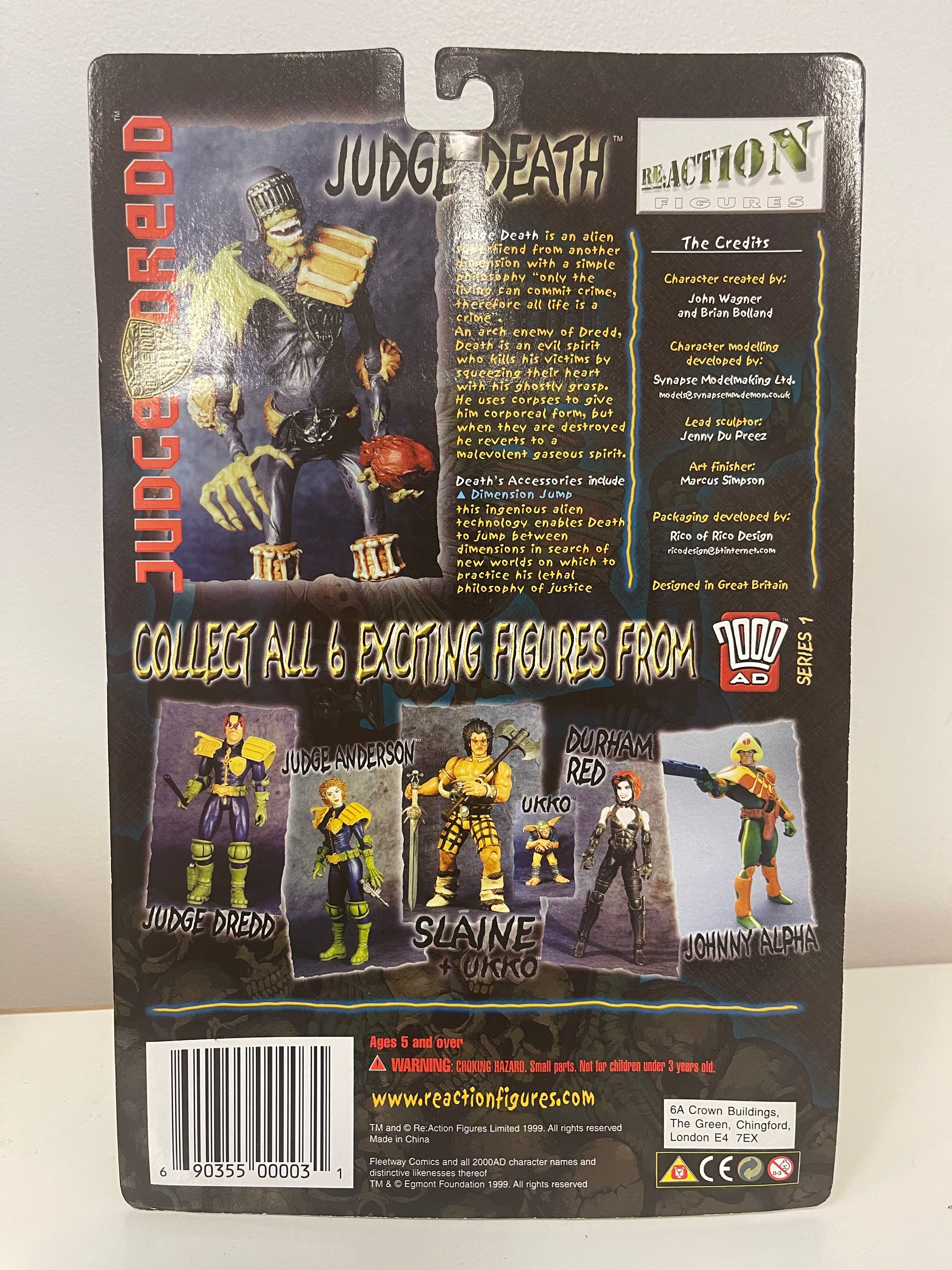 2000 AD Judge Dread Judge Death, new in box. Packaging shows signs of shelf wear. Plastic blister has yellowed from age.