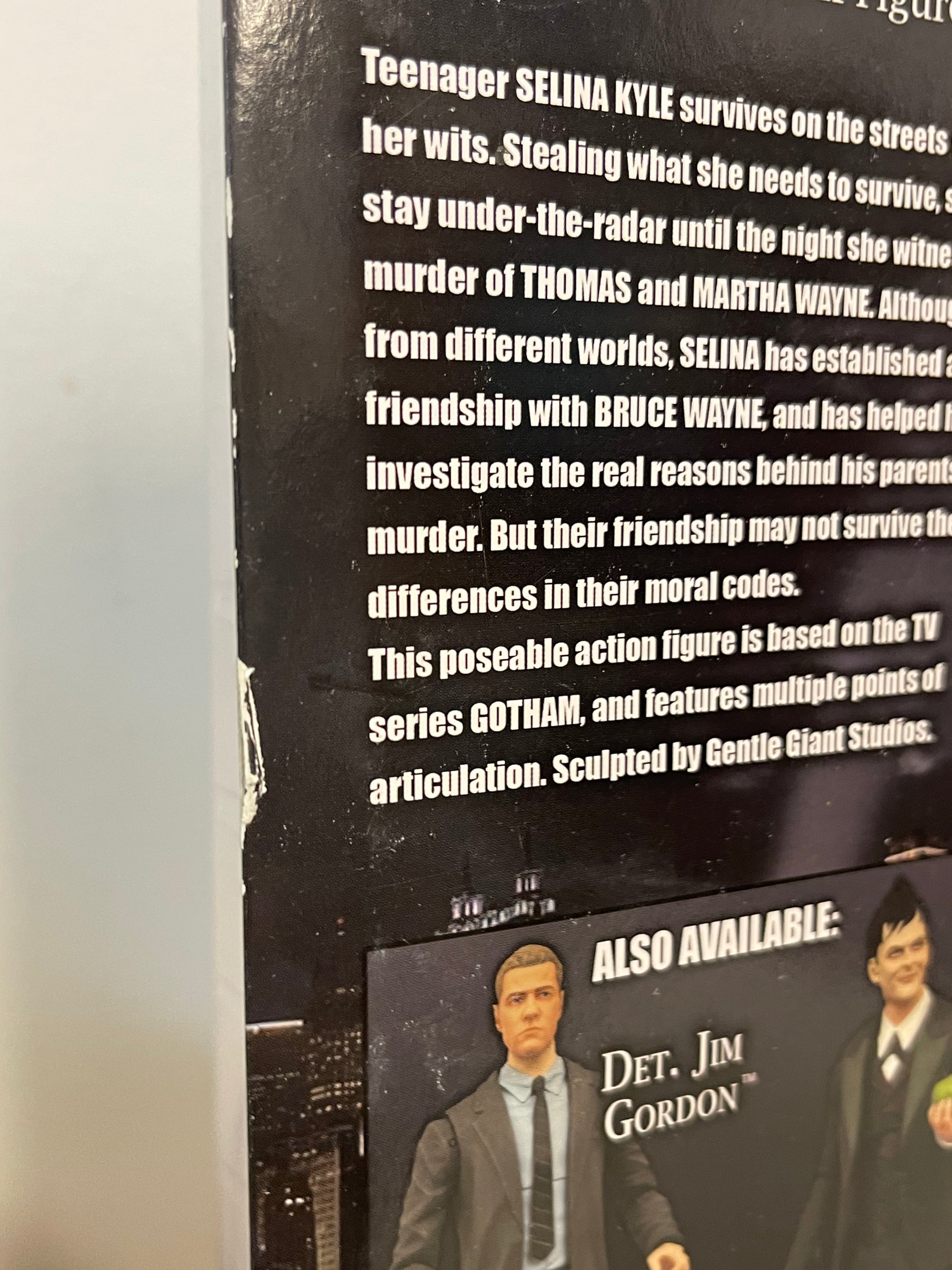 Gotham "Before The Legend" Selina Kyle, new in box. Box shows signs of heavy shelf wear.