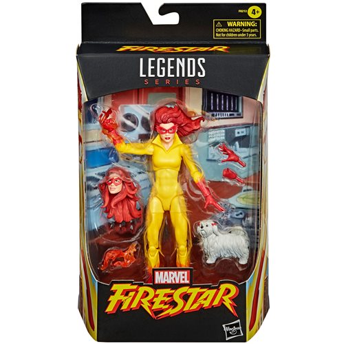 One of Spider-Man's original amazing friends! You know her, you love her, and she's bringing along her dog Miss Lion. This 6-Inch Marvel Legends Series Firestar Action Figure - Exclusive has alternate hands, an alternate head, a dog, and fireblast accessories. Could you ask for more? Maybe - but this is amazing. The packaging has an animation-inspired backdrop that we're sure you're going to want to keep. Angelica Jones soars into battle harnessing the power of microwaves to combat evil as Marvel’s Firestar. Order the Marvel Legends Series Firestar Figure and display her proudly with Iceman and Spider-Man on your desk! Age 4 and up.