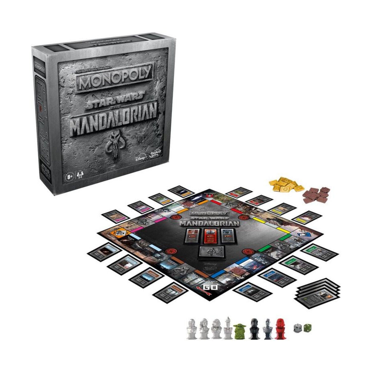 In Star Wars – The Mandalorian Monopoly, characters have unique abilities! Travel with The Child to keep it safe and use its mysterious powers in battle.