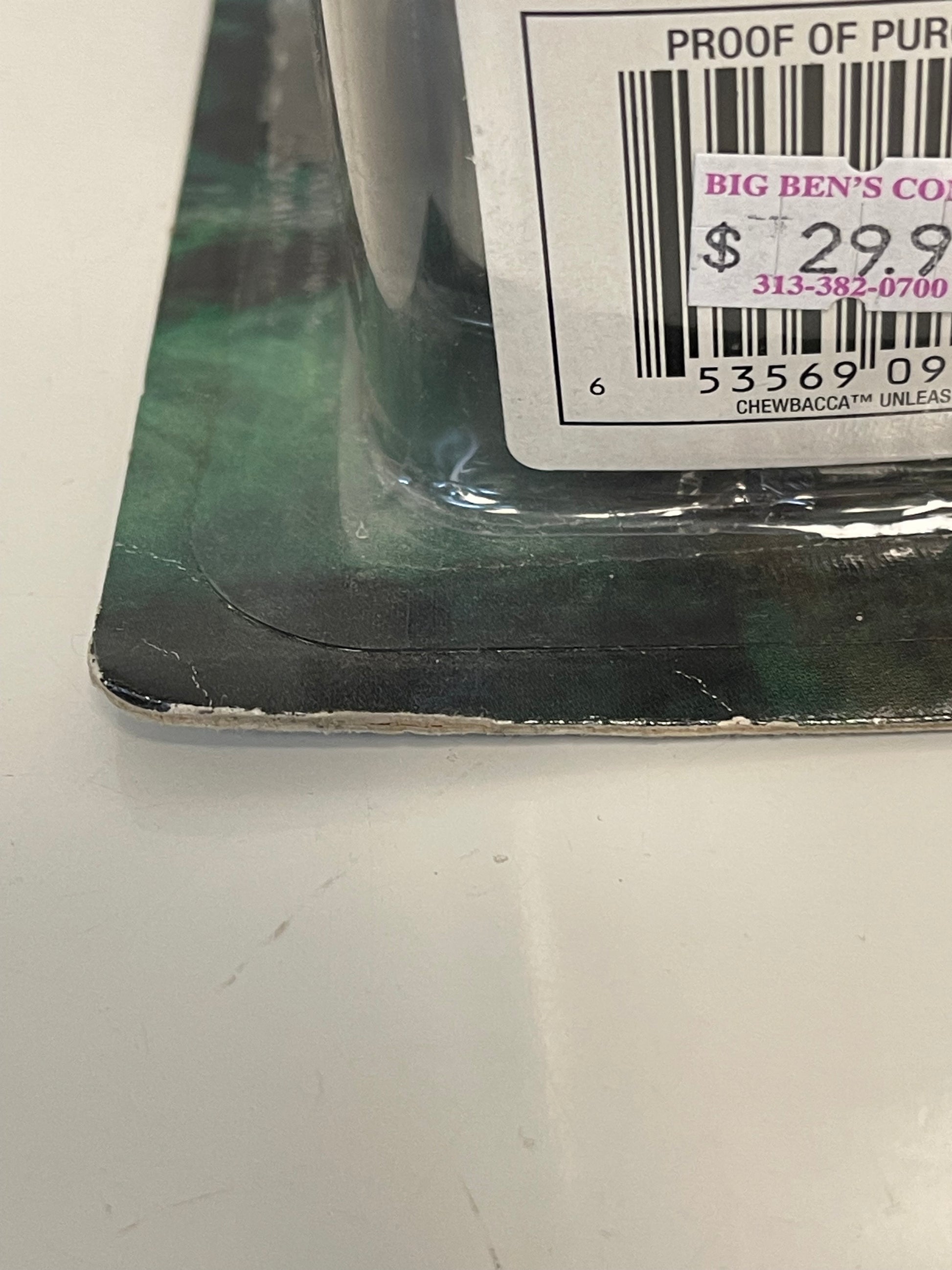 - Plastic blister has partially separated from card on left side