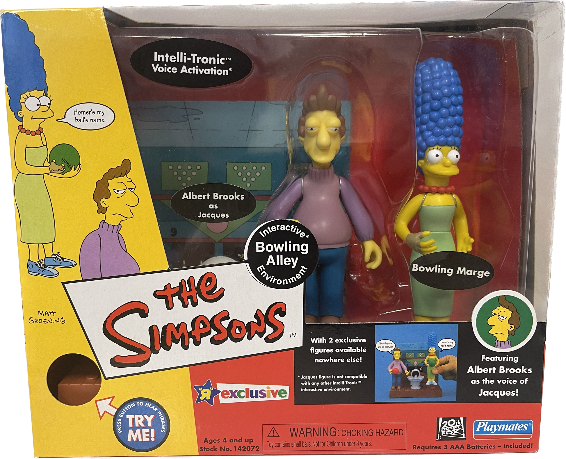 The Simpsons Interactive Bowling Alley Environment & Figure Set, new in box. This set comes with exclusive figures of Albert Brooks as Jaques, and Bowling Marge.